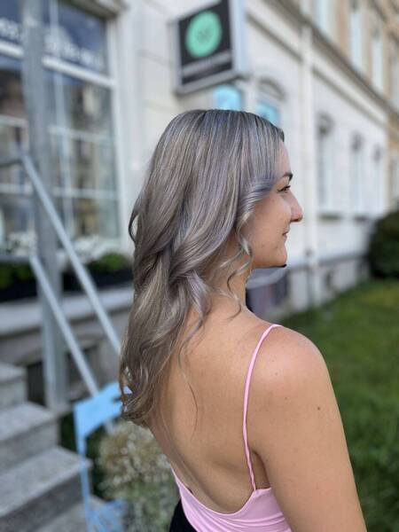Dieses Paket enthält aufwendiges erarbeiten vieler Foliensträhnen, um insgesamt viel Helligkeit ins Haar zu bringen. Ein abmattierendes Glossing, Waschen,Schneiden und Föhnen sind im Preis enthalten.